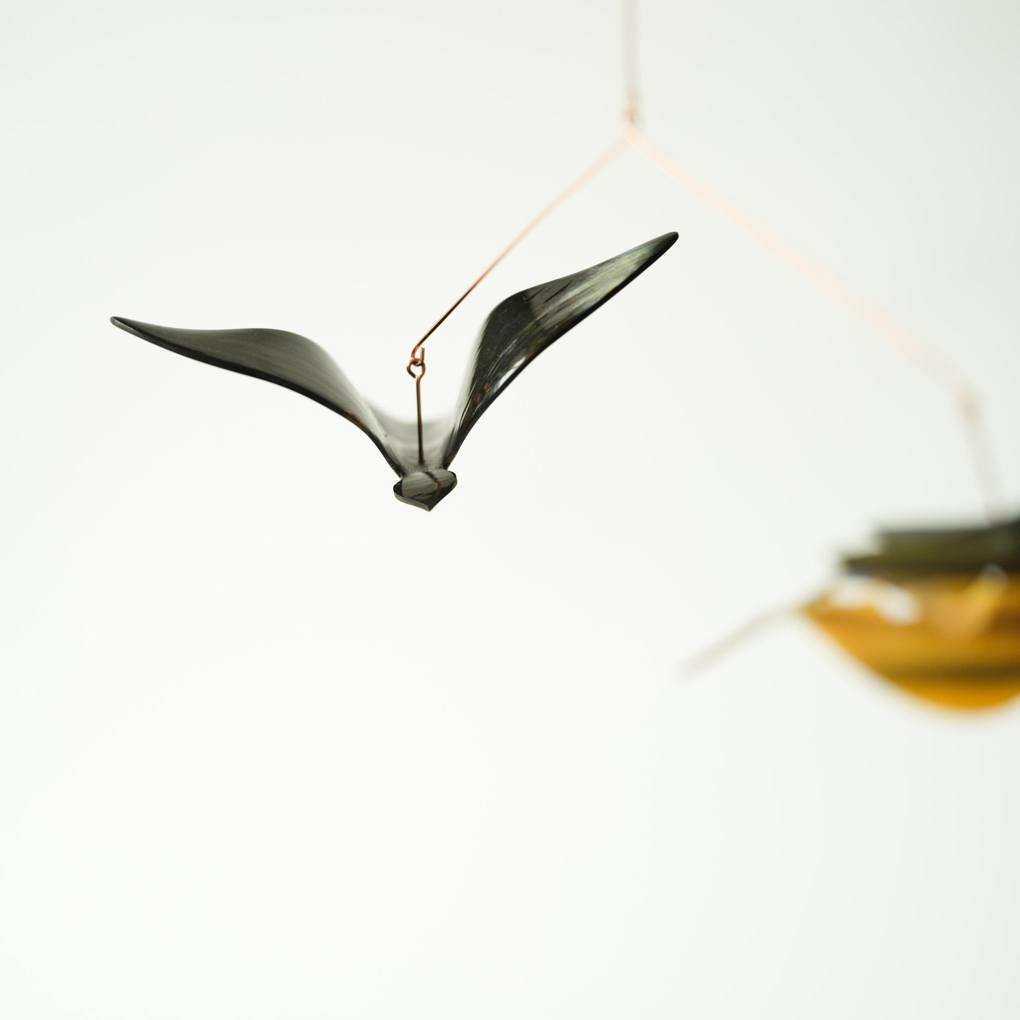 Das Mobile besteht aus einem Metalldraht. Der Vogel wird mit einem Metallhaken auf der Rückseite aufgehängt, der genau in den Haken des Mobiles passt. Sie können auch mehrere Mobiles miteinander verbinden und so Ihr ganz persönliches Mobile gestalten – so groß, wie Sie möchten. Nur Ihre Fantasie setzt die Grenzen!