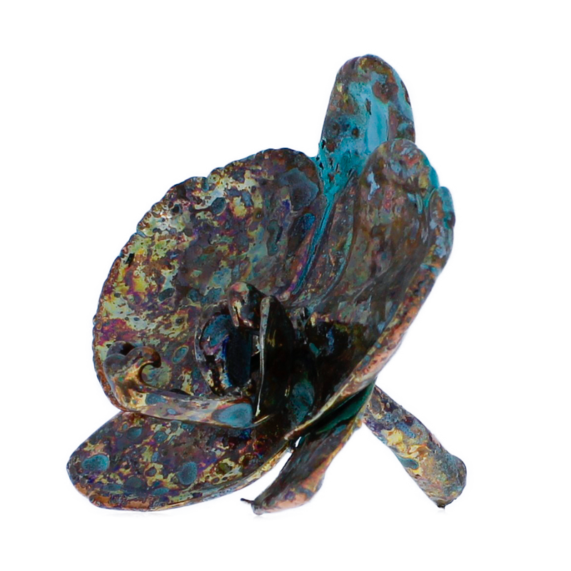 Farbe: Grünspan. Die Farbe kann sich im Laufe der Zeit verändern, z. B. anlaufen oder matt werden.