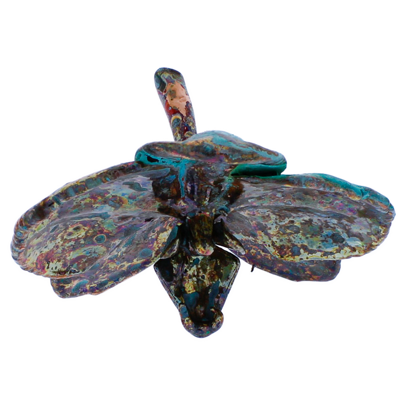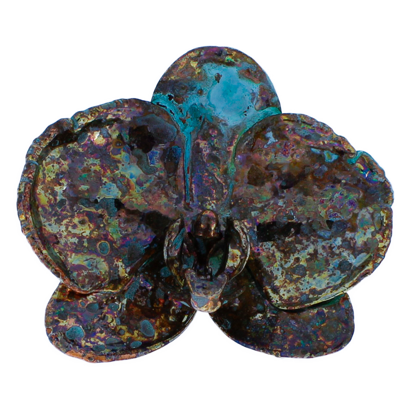 Wir haben eine echte Orchideenblüte durch Elektrolyse versilbert! Unter der schönen Metalloberfläche verbirgt sich also eine echte Orchideenblüte.