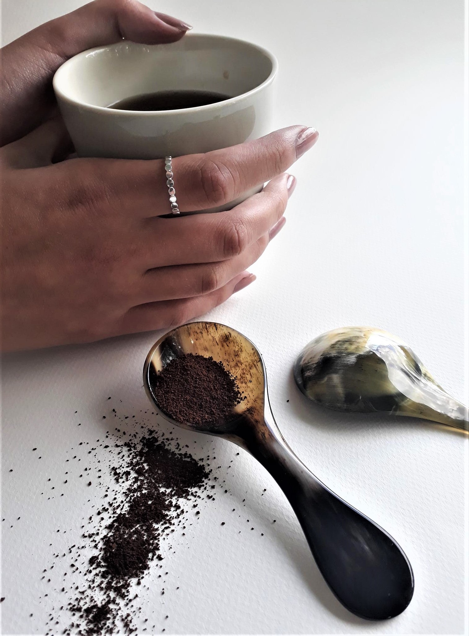 Küchenlöffel Kaffeemaß aus Horn – speziell zum Dosieren von Kaffee. Der Kaffeelöffel wurde so entworfen, dass er ca. 8 Gramm gemahlenen Kaffee fasst. Mit seinem kurzen Griff eignet er sich perfekt für die Kaffeedose. Er lässt sich aber auch gut in mittelgroßen Vorratsgläsern in der Küche verwenden – zum Beispiel für Mehl oder Zucker.